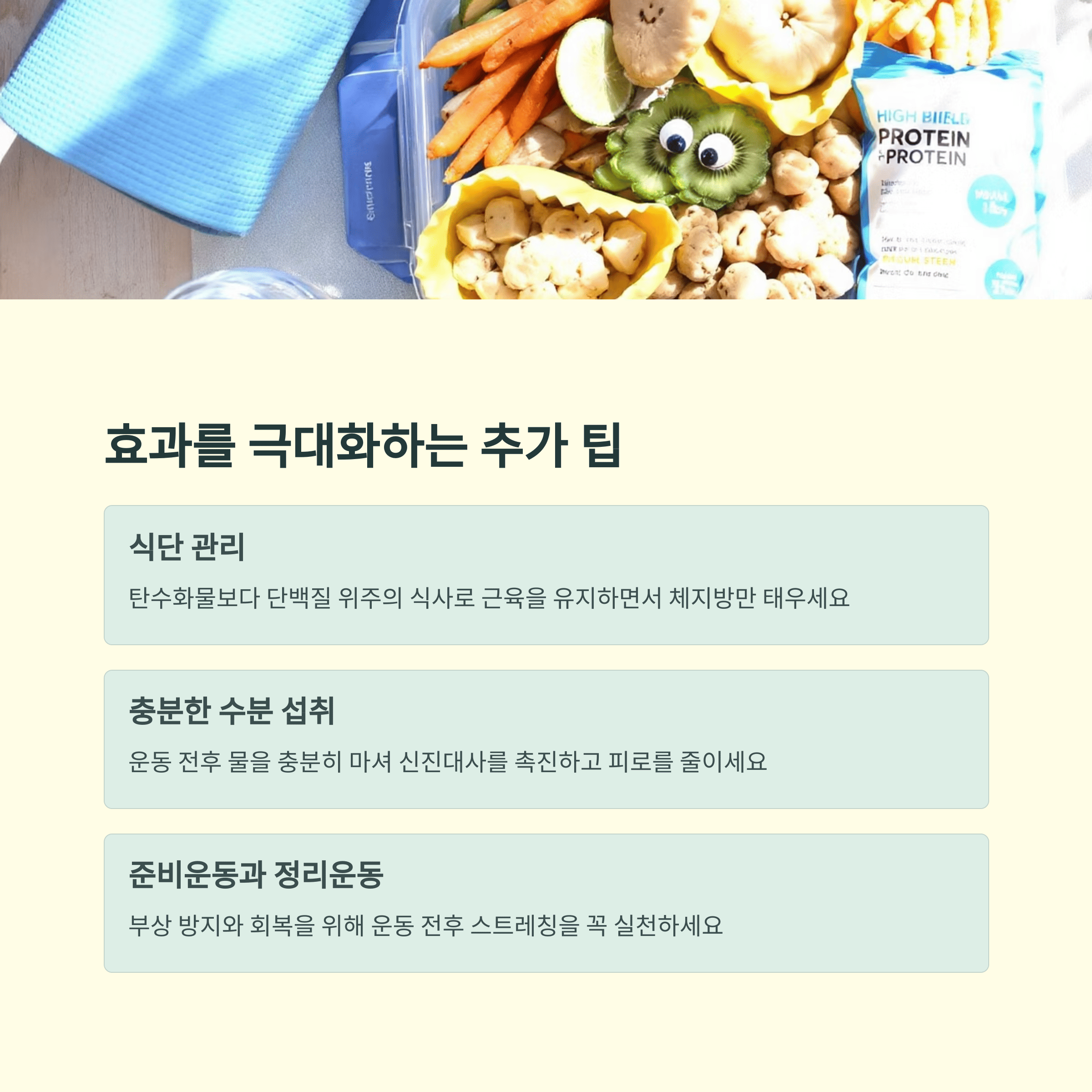 운동 효과를 극대화하려면 다음 요소를 함께 관리하는 것이 중요합니다.