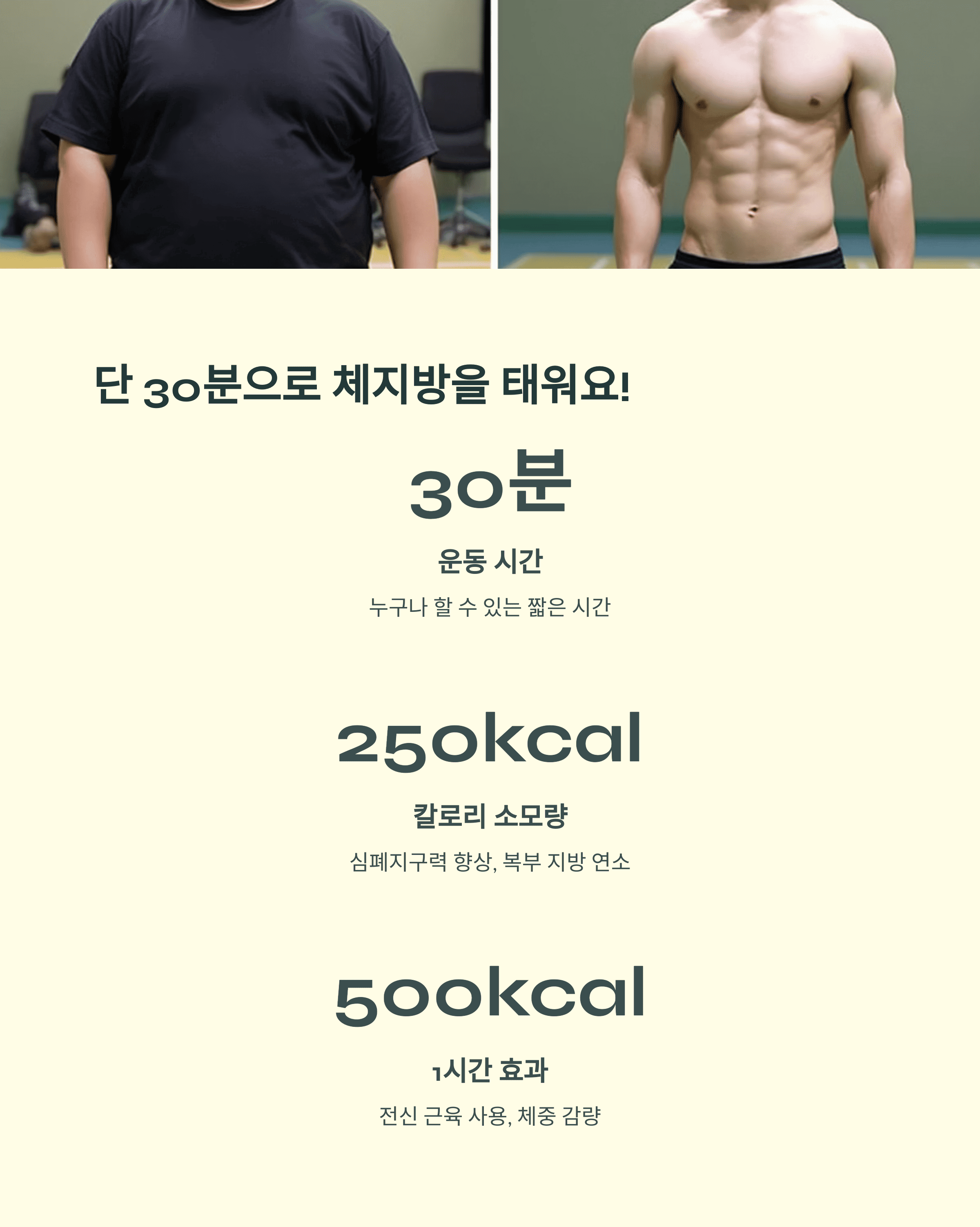 30분 약 250kcal 심폐지구력 향상, 복부 지방 연소