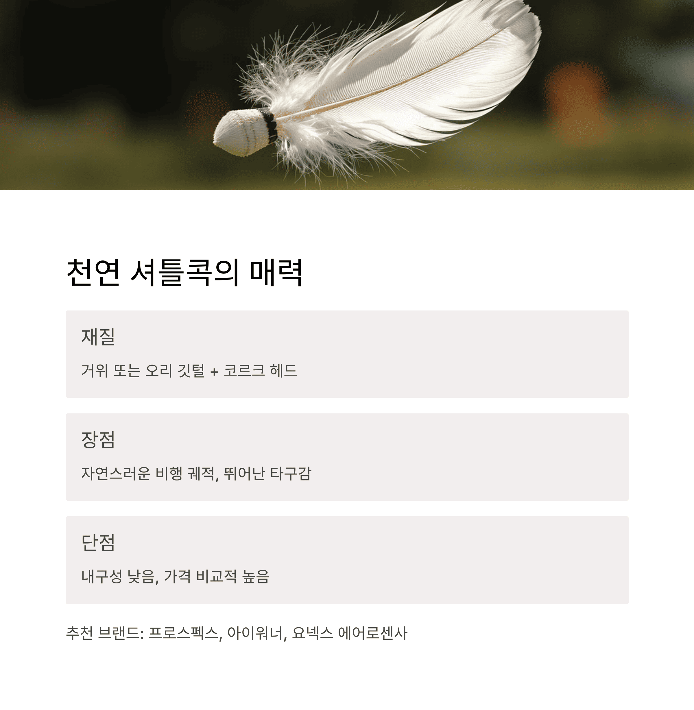 2. 천연 셔틀콕의 특징