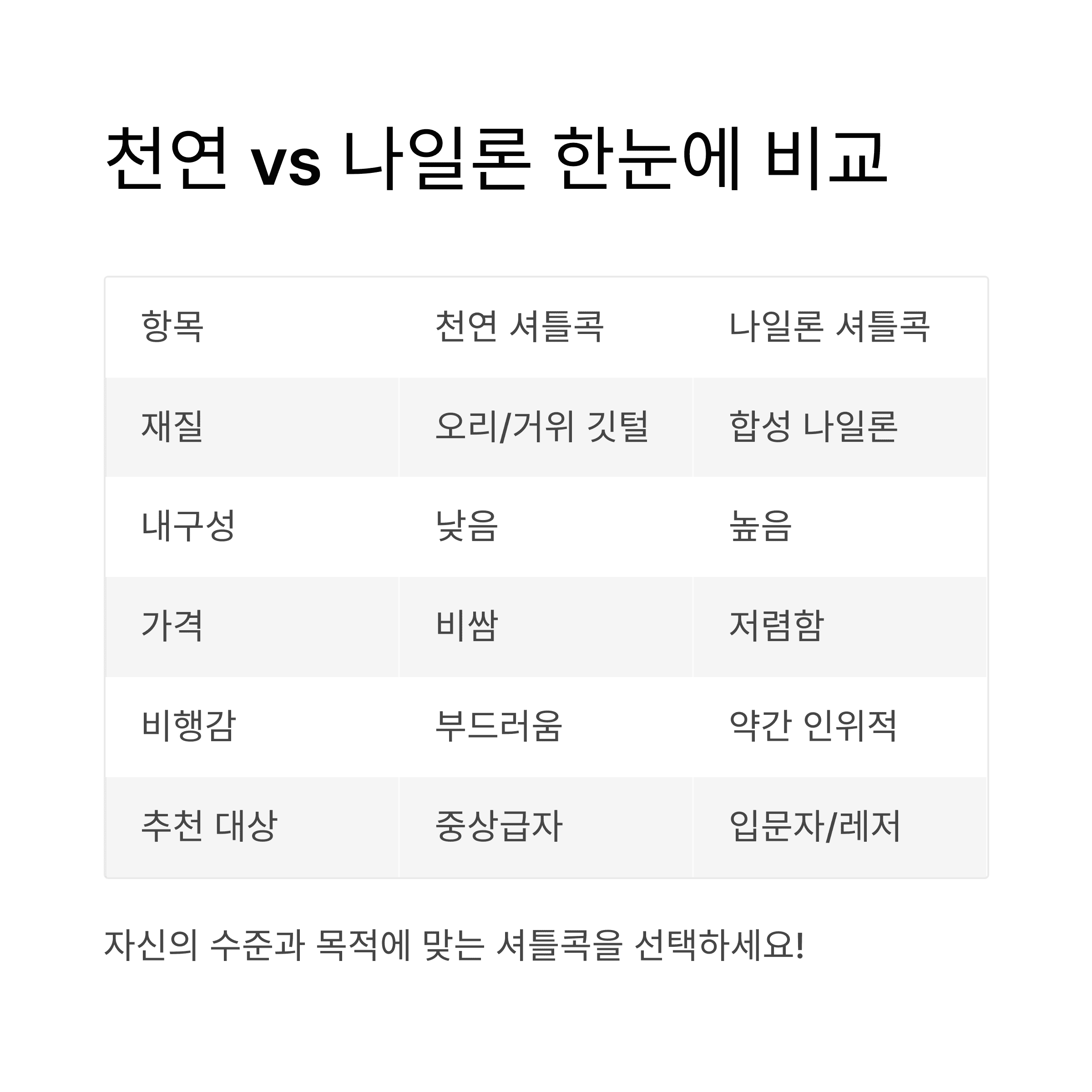 4. 천연 셔틀콕 vs 나일론 셔틀콕 비교표