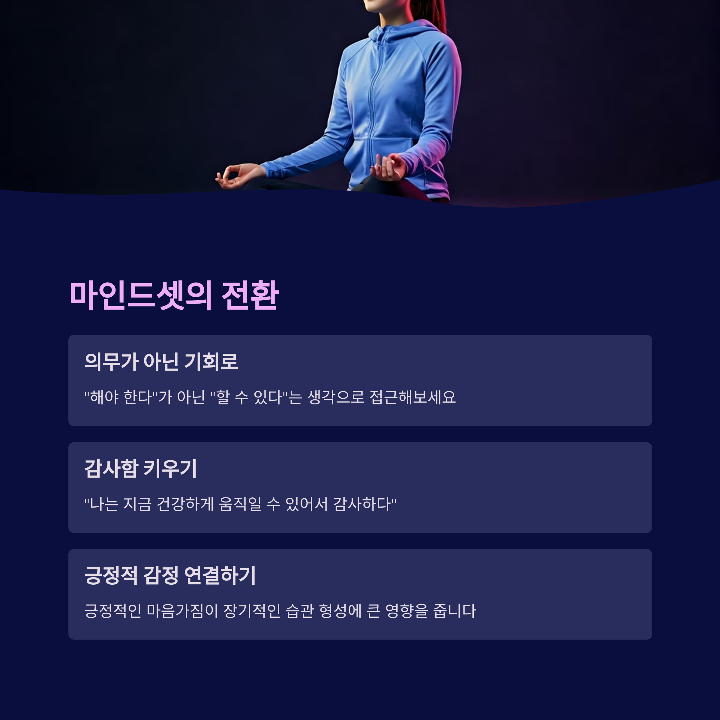 마인드셋의 전환이 장기적인 습관 형성에 큰 영향을 줍니다.