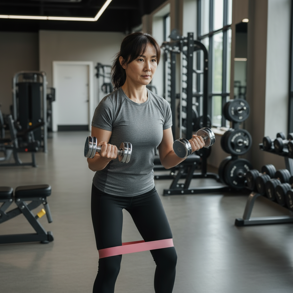 | 근력 운동 (저항 운동) | 근육량 유지·증가, 골밀도 강화, 체지방 감소 | 주 2~3회 / 1회당 40~60분, 반복 8~15회 수준 | 덤벨, 밴드, 머신, 맨몸 등 다양하게 활용 |