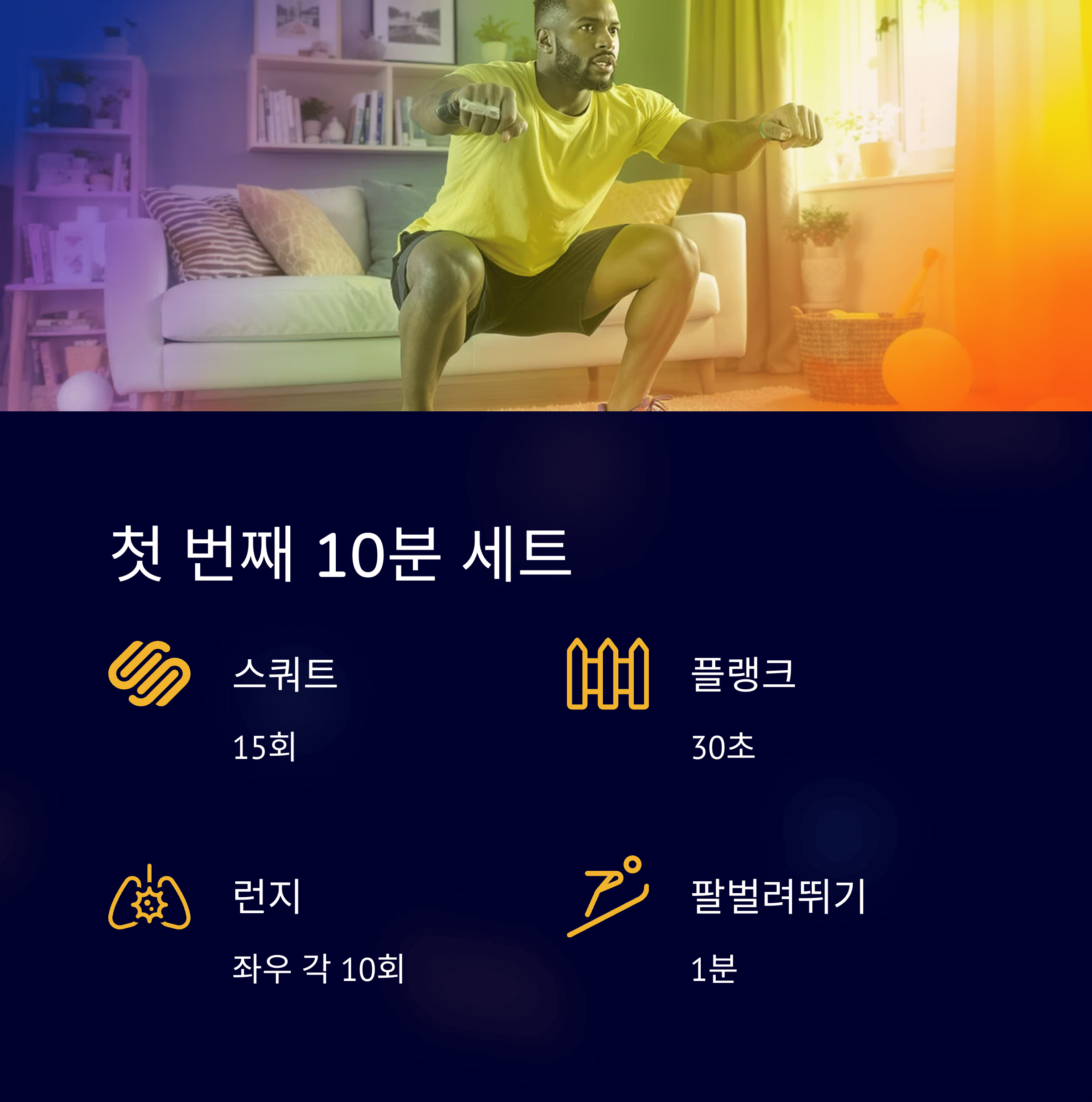 이 루틴은 집에서도 도구 없이 실천할 수 있도록 구성되어 있으며, 총 30분 안에 유산소와 근력 운동을 균형 있게 배치하였습니다.