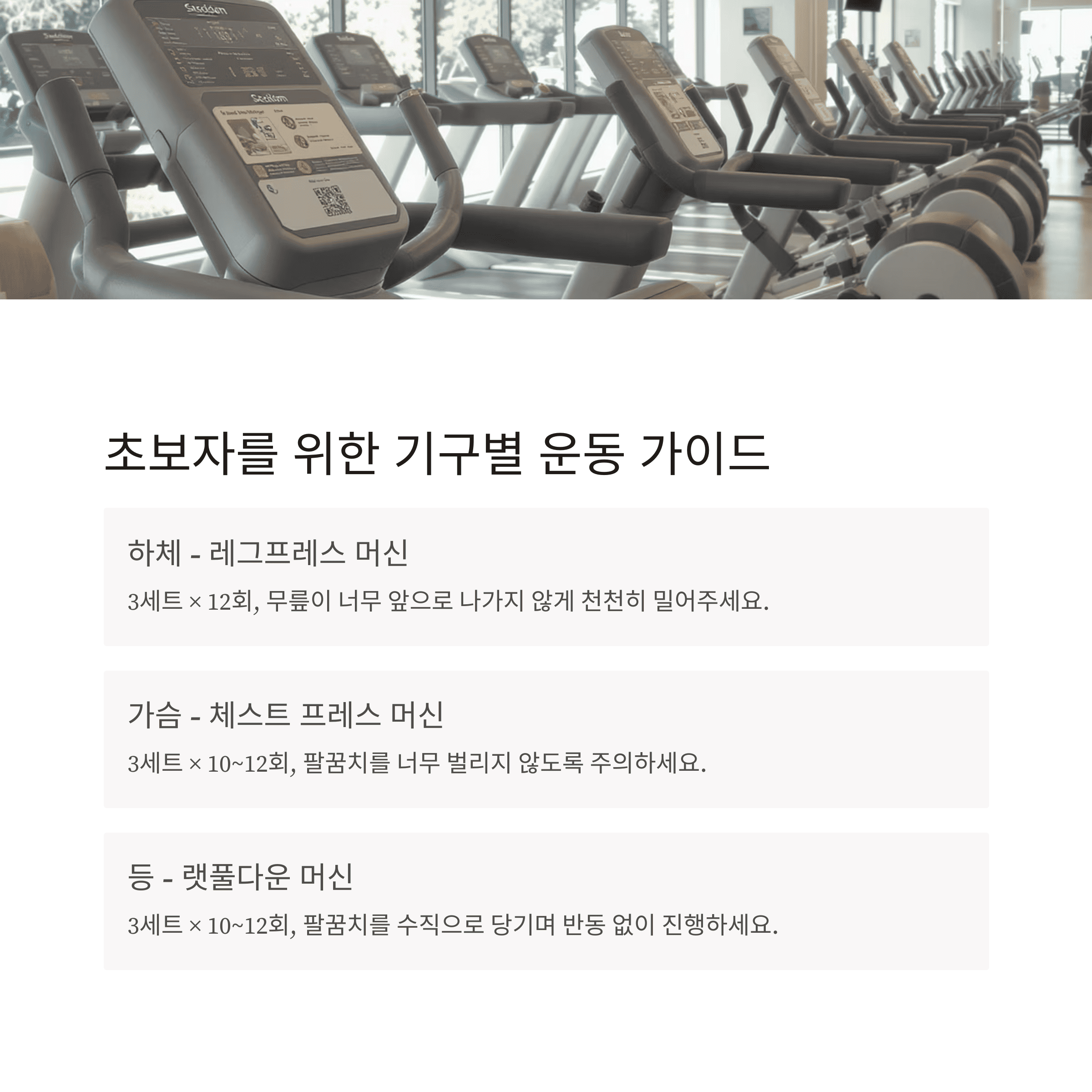 2. 기구별 운동 루틴 예시 (초보자용)